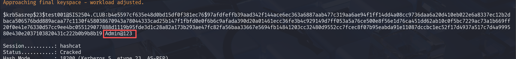危害:如果没有预身份认证那么任何用户都可以向KDC(密钥分发中心)请求任意用户的TGT,KDC会返回给该用户的用其密码派生出的密钥加密的TGT,之后便可以用hashcat -m18200 output.txt wordlist进行爆破