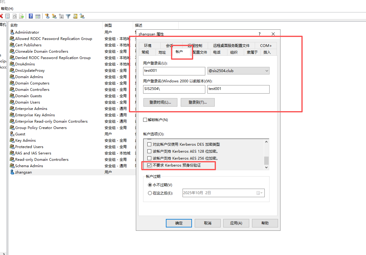 1.3.1.1AS-REP Roasting发生在kerberos认证中的as-req阶段,问题是因为用户在认证的时候勾选了需要进行域身份认证。