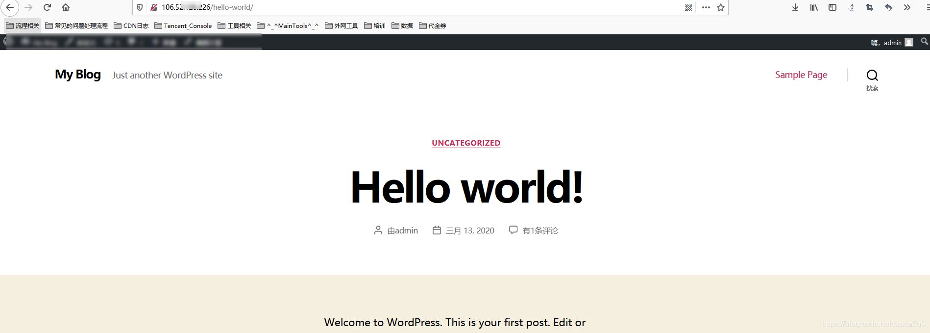 没有设置固定连接前,我们访问WordPress的默认页面是没有任何问题的,如下:
