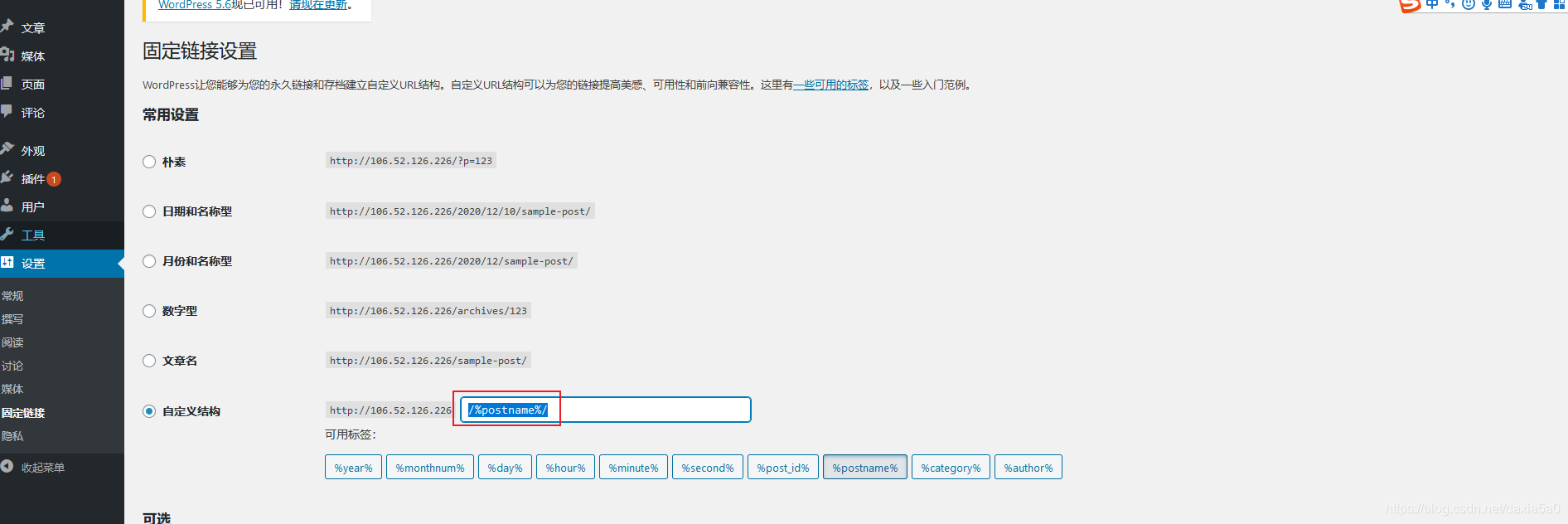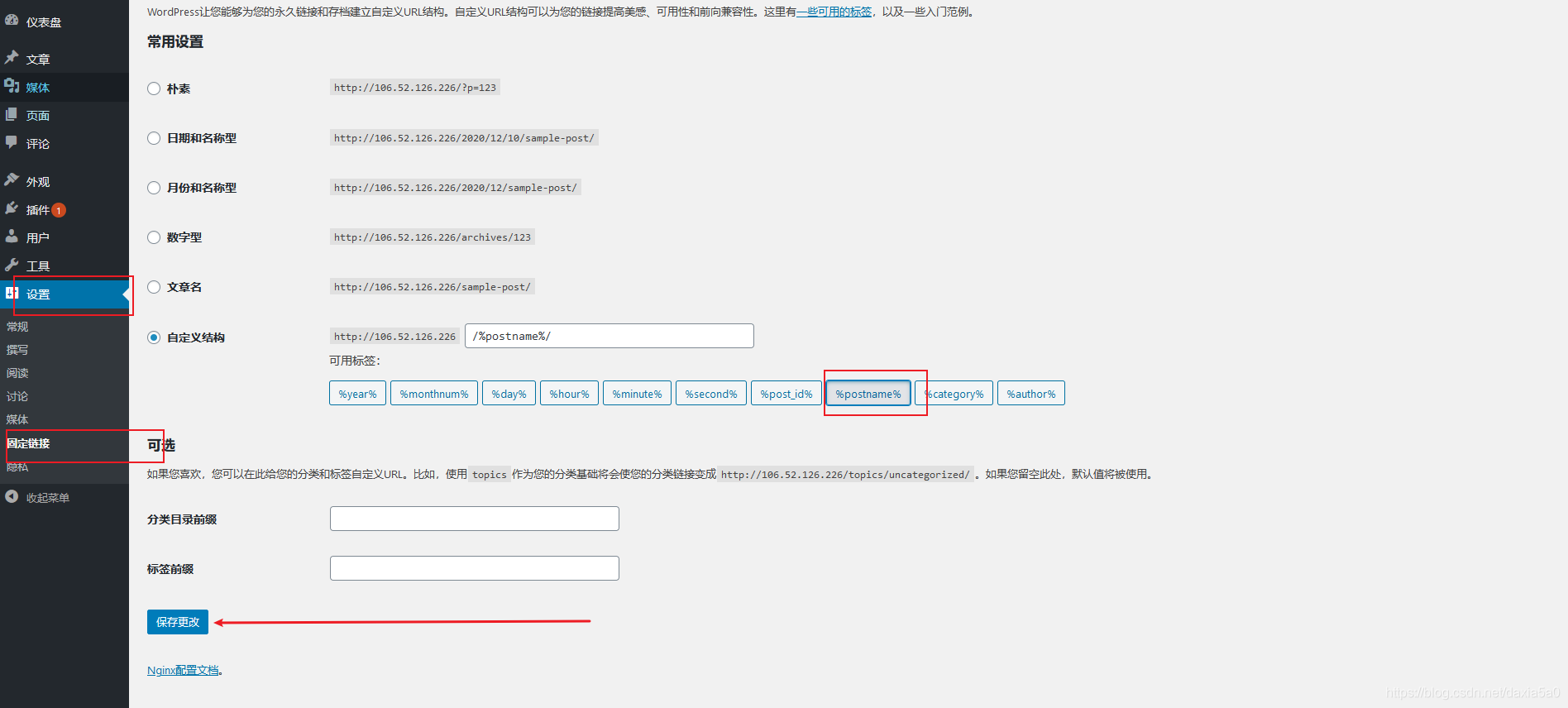 IP地址后面的hello-world就是固定连接中的/%postname%/
