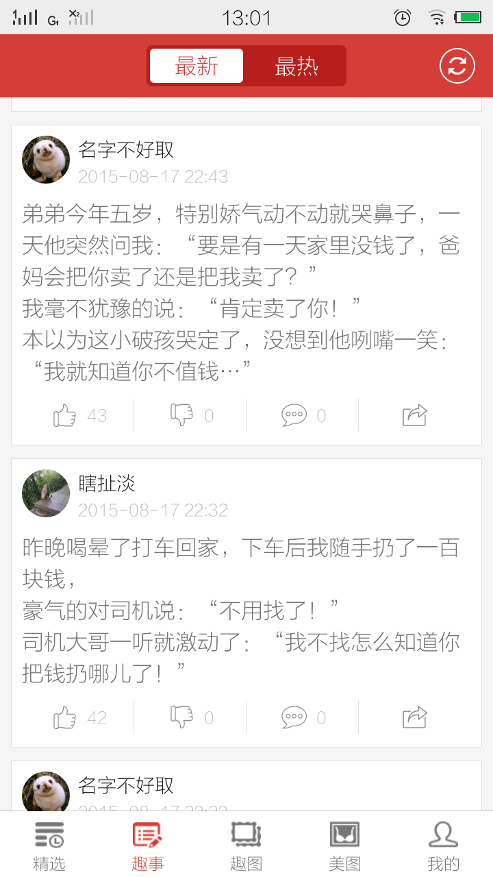 决定开发一个个人app,这是一件简单的事情,但是开发一个什么app呢?这个就没那么简单了。最初想打算搞一个市面上少的新颖点的,但是总没有什么好的想法。哎,创新能力不够啊!因为平时自己喜欢看段子类的app,所以最终决定开发这样的app算了,尽管市面上多的不行,但是对于个人开发者来说,开发这样的app还是挺适合的。