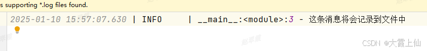logger.info("这条消息将会记录到文件中")