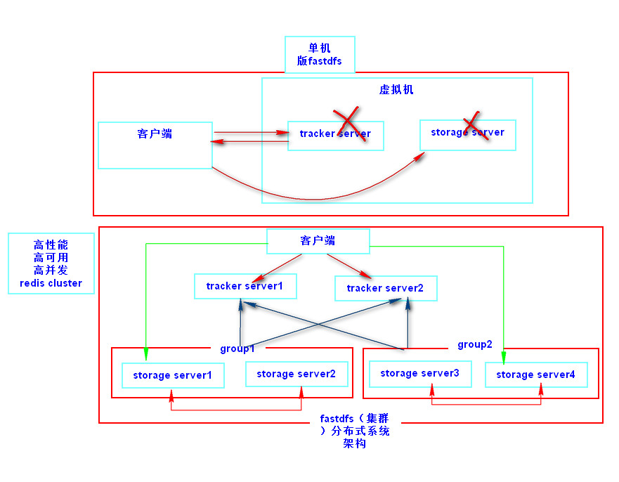 集群版的搭建很容易:只需要在单机版的搭建的最后一步的文件配置上 配置多个tracker 追踪服务就ok