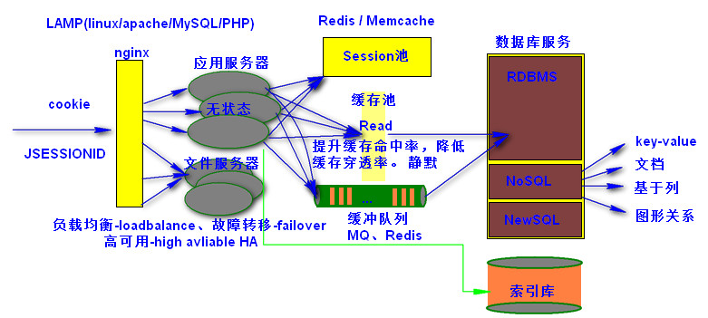 传统的架构,优化点就是解决这些问题,比喻分布式文件服务器,分布式缓存,还有一点就是数据库的优化......