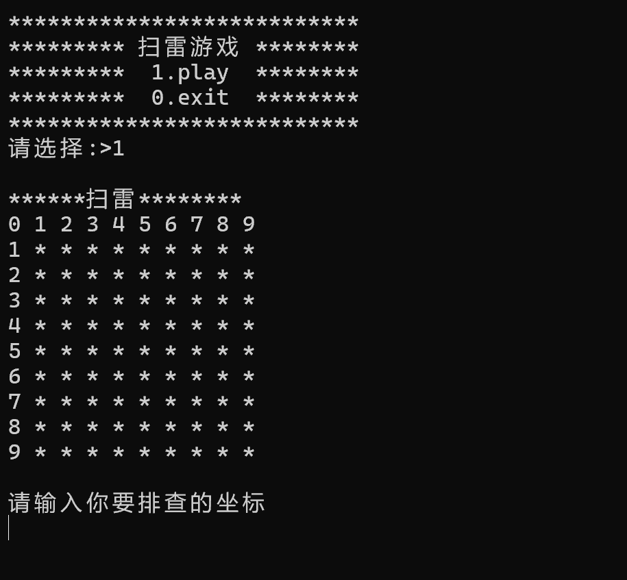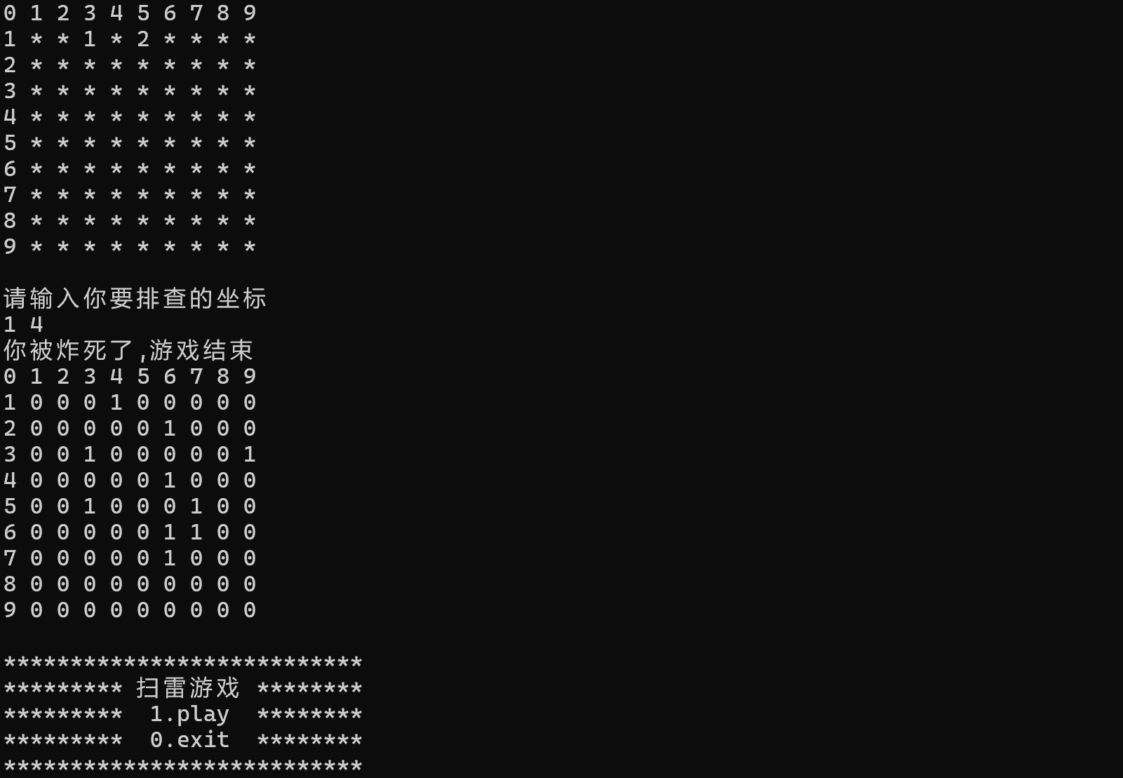 char mine[ROWS][COLS] = { 0 };//初始化内雷棋盘