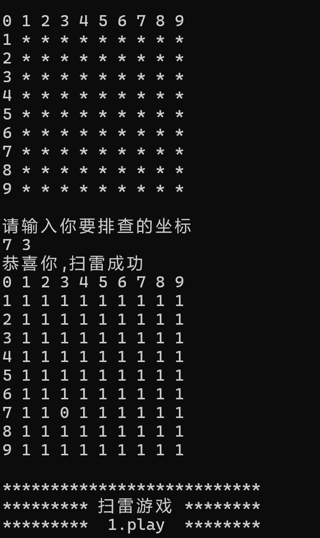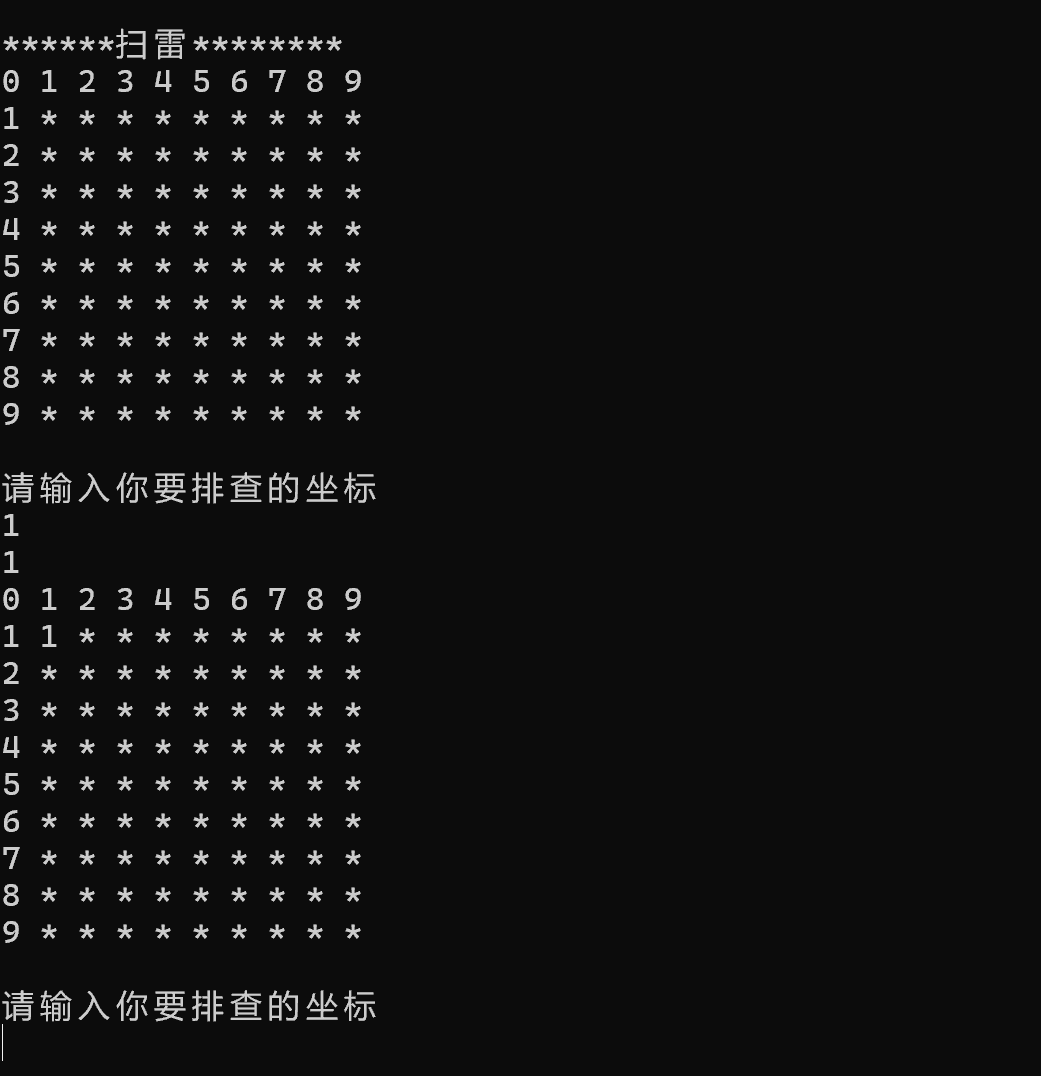 findmine(board, mine, ROWS, COLS, ROW, COL);//扫雷逻辑