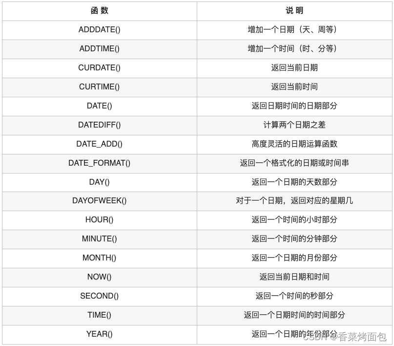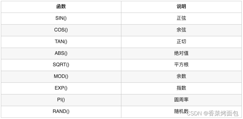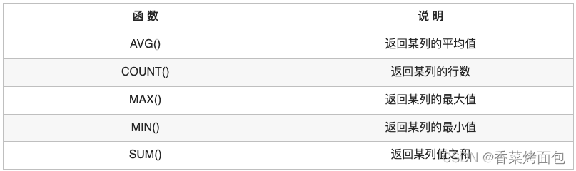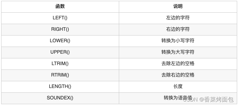 各个 DBMS 的函数都是不相同的,因此不可移植,以下主要是 MySQL 的函数。