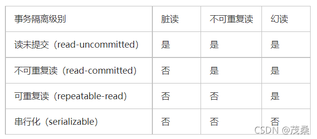 强制事务排序:一个事务在执行的时候,其他事务是不可以进行执行的;这种隔离级别效率很低