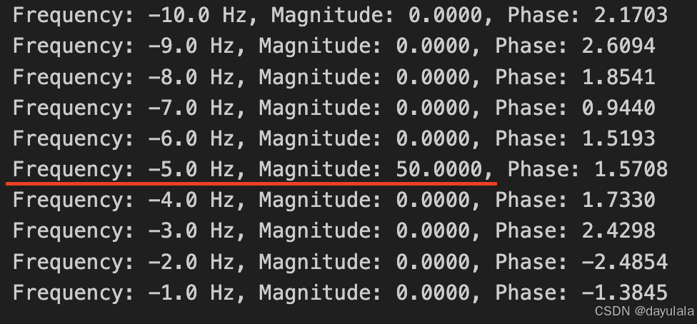 - 后半部分 [−49,−48,...,−1][−49,−48,...,−1] 是 负频率,表示数学上的共轭对称部分(对实信号来说是冗余的)。