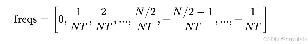 第二个代码:freqs = np.fft.fftfreq(N, T):计算频率坐标