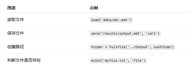 (相对于手动拼接)手动拼接路径虽然可以用 filepath = [folder, file],但在不同操作系统下容易出错,而 fullfile 会根据系统自动选择正确的分隔符(/ 或 \,取决于操作系统)。