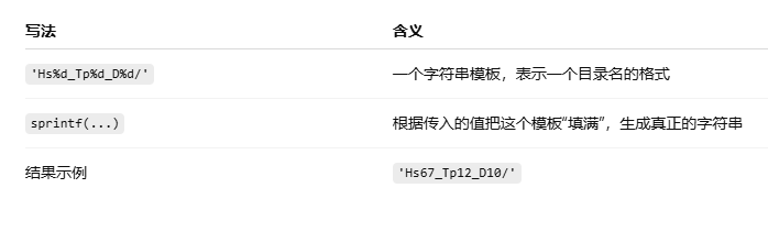 字符串模板(模板字符串),可以包含以下格式占位符(这里只包含了格式占位符的一种%d),用来告诉 MATLAB:Hs[数字]_Tp[数字]_D[数字]。
