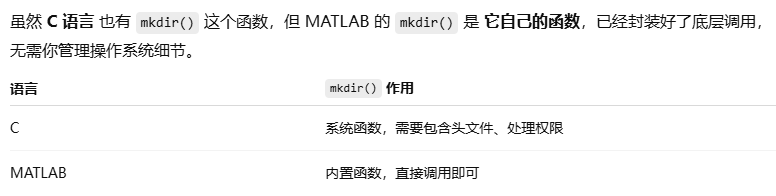 mkdir() 是 MATLAB 内置函数,不是 C 语言,用于创建文件夹