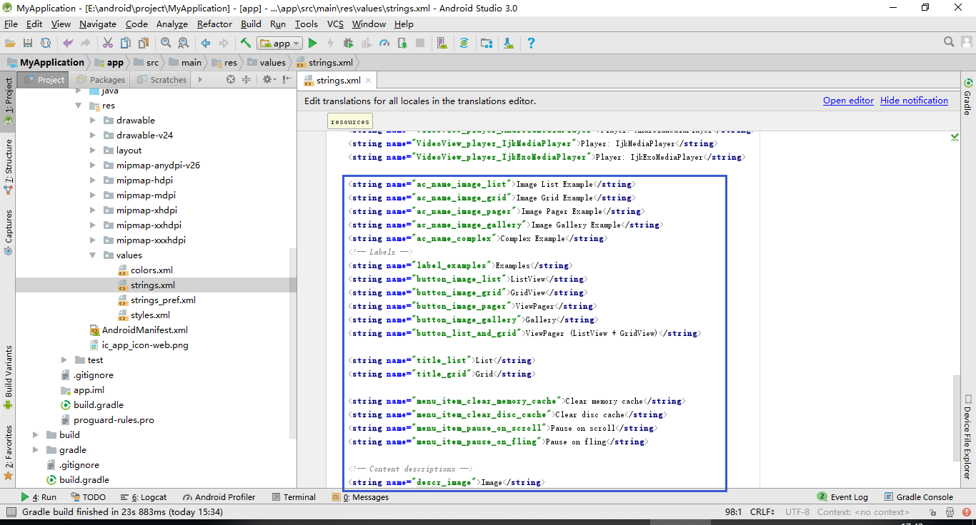 导入drawable中的图片,合并strings.xml的内容: