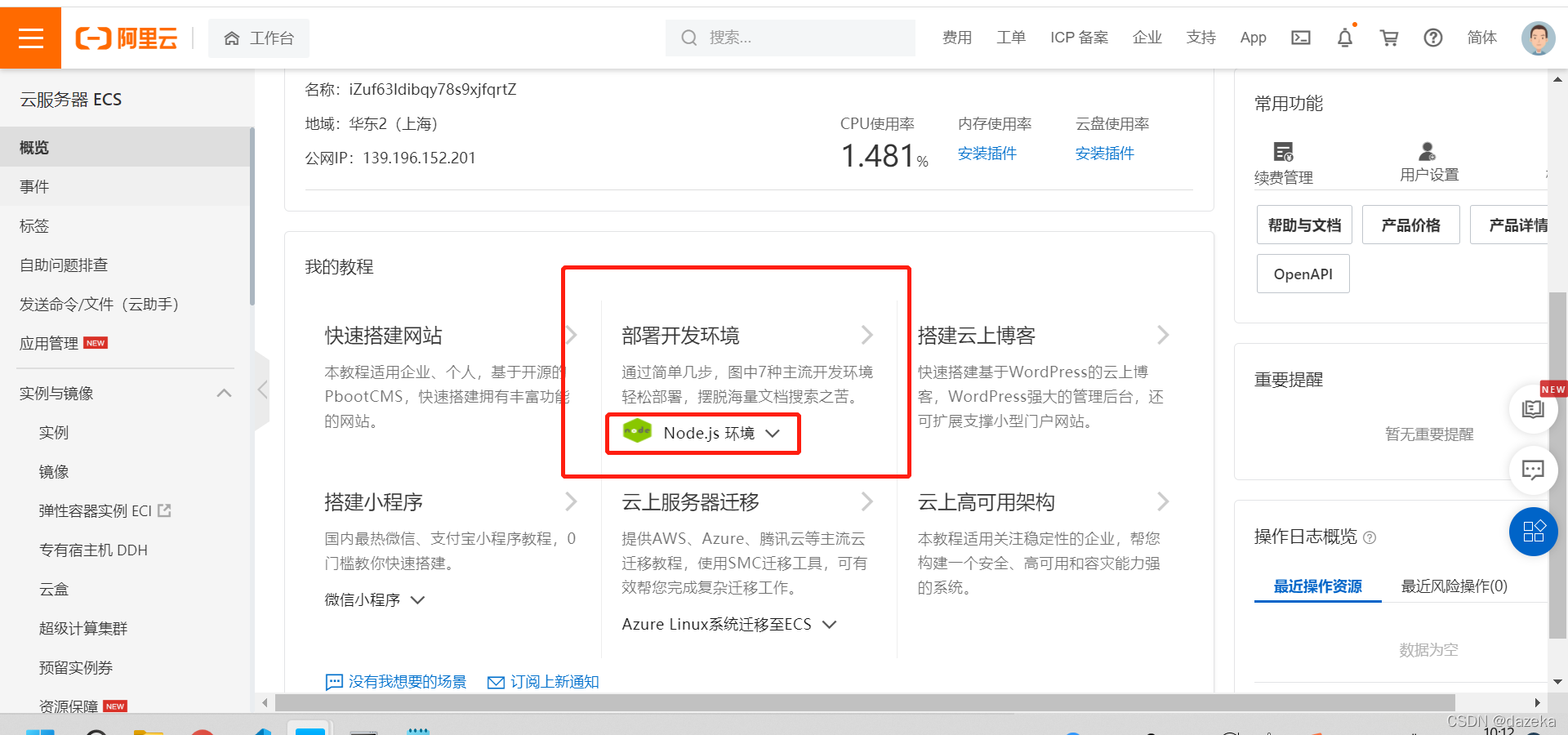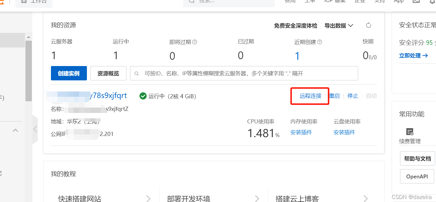 买好后,进入我们刚刚买好的云服务器控制台,应该是自动启动好了的