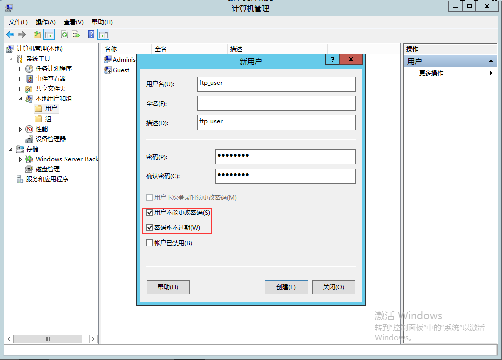 用户密码按照下图勾选,创建用户