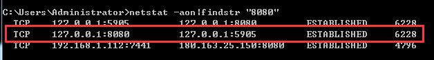 netstat -aon|findstr "8080"