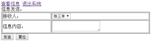 员工留言信息如图,点击“退出系统”,返回登录界面,点击“发布信息”,跳转“发信息”页面,效果如下: