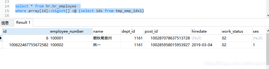 where array[id]::bigint[] <@ (select ids from tmp_emp_ids1)