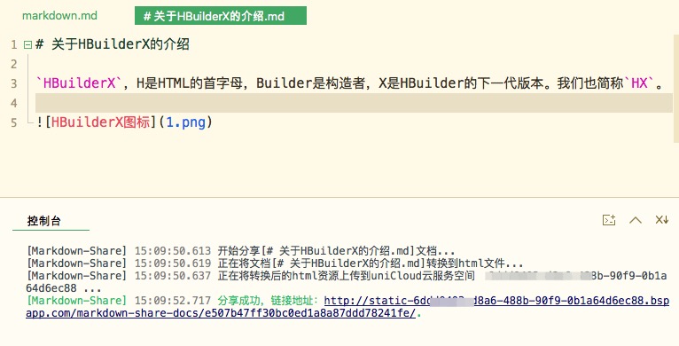 markdown一键分享,顾名思义是在HBuilderX中写好的markdown文档,可以简单通过编辑器右键【一键分享】菜单或者快捷键上传到云端,并生成分享链接,并且完全免费!