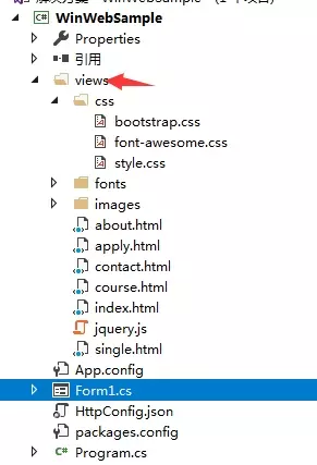 静态文件属性设置成嵌入程序或编译复制的方式进行发布,程序可以在webBrowser设置服务地址即可打开网页,效果如下: