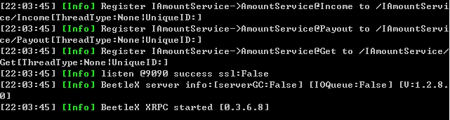 private static XRPCServer mXRPCServer; static void Main(string[] args) { mXRPCServer = new XRPCServer(); mXRPCServer.ServerOptions.LogLevel = LogType.Error; mXRPCServer.Register(typeof(Program).Assembly); mXRPCServer.Open(); Console.Read(); }