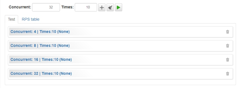 很多时候需要对一个服务进行不同并发的测试,这样可以观察服务在那个并发量下的最并发处理能力;组件支持对同时添加多个测试并发组并进行测试和结果对比。