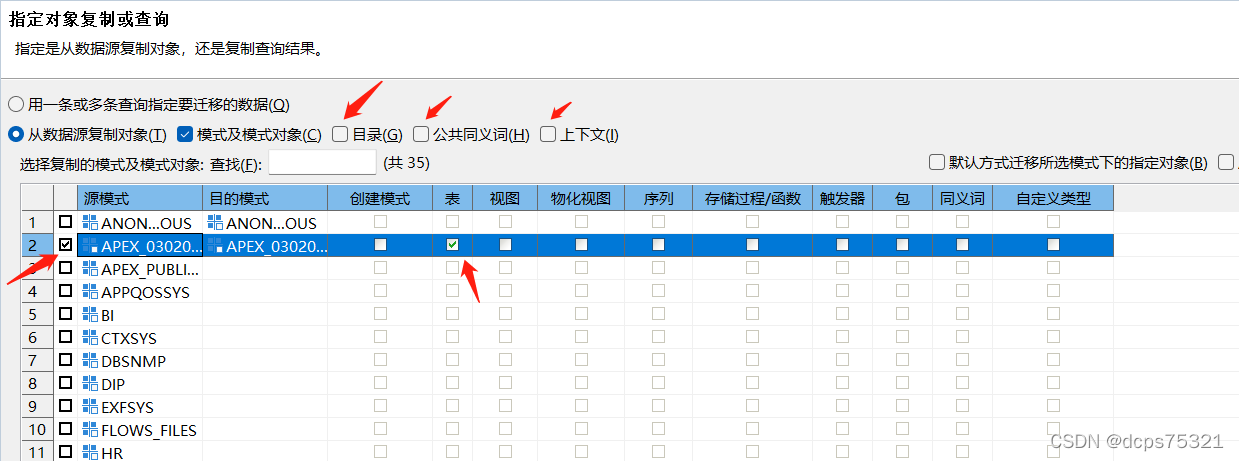 只勾选表,其他不勾选,并把“目录”、“公共同义词”、“上下文”取消勾选,为了没有多余对象出现。选好后点击“下一步”