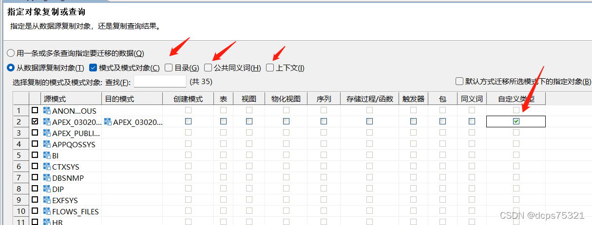 存储过程/函数迁移后,再迁移自定义类型。同理,按照“3.迁移表”走到勾选模式的位置,也是同样的设置方法,但要勾选自定义类型,点击“下一步