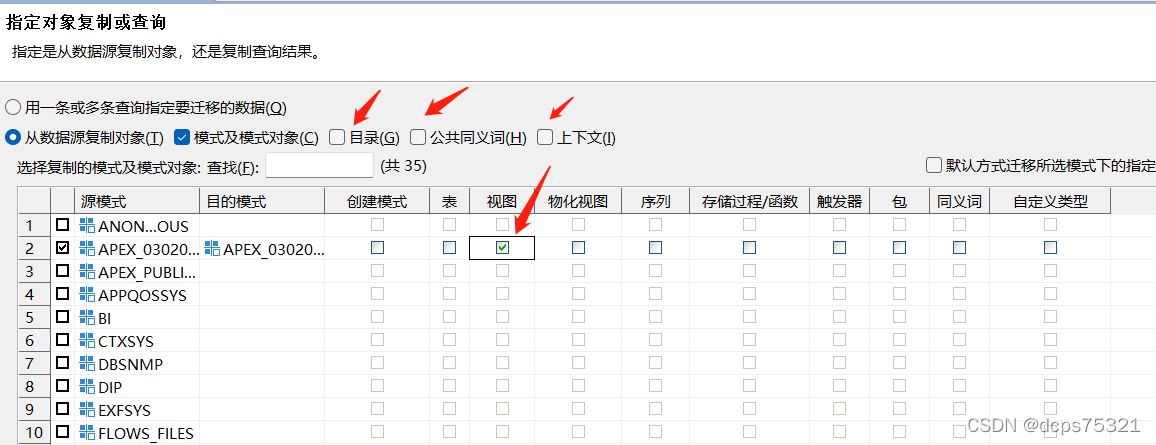 约束、索引迁移后,再迁移视图。同理,按照“3.迁移表”走到勾选模式的位置,也是同样的设置方法,,但要勾选视图。点击“下一步