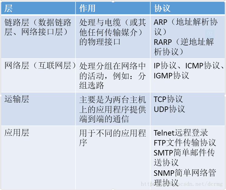 TCP/IP协议族包含了很多协议,比如管文件打包的、管网络传输的,管接收的等,按照他们的作用不同,也为了彼此间更好的分工协作,从而把问题简单化,划分为了4大类,而这4类之间也不是简单的分类,而是后者利用前者提供的服务的基础上,同时向其后的类别提供服务,就像楼房一样是分层的,但是本层内部的更改不会影响到其他层,所以更一般意义上,更形象的说TCP/IP协议分为4层协议,而不说分为4类协议。