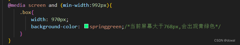 “min-width”与“max-width”相反,指的是媒体类型大于或等于指定宽度时,样式生效。