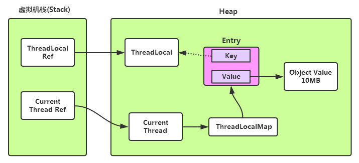 当localCache的值被重置之后cacheInstance被ThreadLocalMap中的value引用,无法被GC,但是其key对ThreadLocal实例的引用是一个弱引用,本来ThreadLocal的实例被localCache和ThreadLocalMap的key同时引用,但是当localCache的引用被重置之后,则ThreadLocal的实例只有ThreadLocalMap的key这样一个弱引用了,此时这个实例在GC的时候能够被清理。