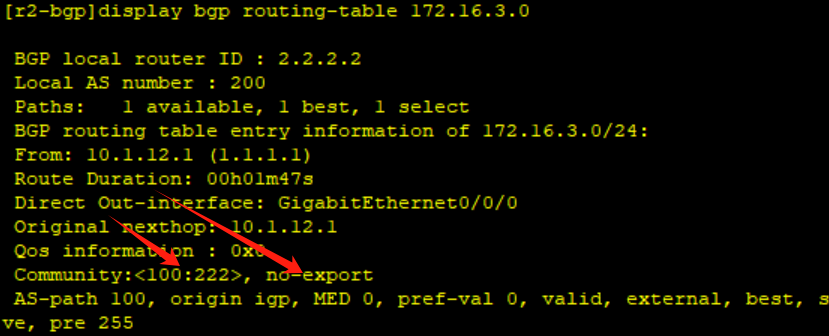 [r1-bgp]display bgp routing-table 172.16.1.0 -- 查看是否打上标记
