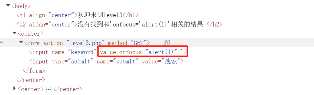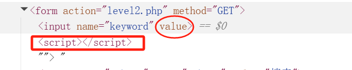 分析:将value 属性提前闭合(value=""),将input也形成闭合,然后注入 <script> 标签。