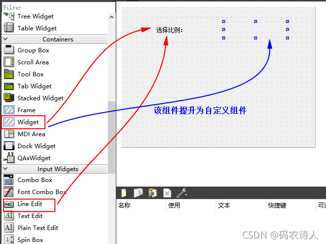 该部分主要定义一个自定义的类去实现系统的控件里的部分功能。其实也就是将系统的控件提升为自己定义的类,注意:自定义类必须去继承要提升的控件类,否则控件提升会失败。具体步骤如下: