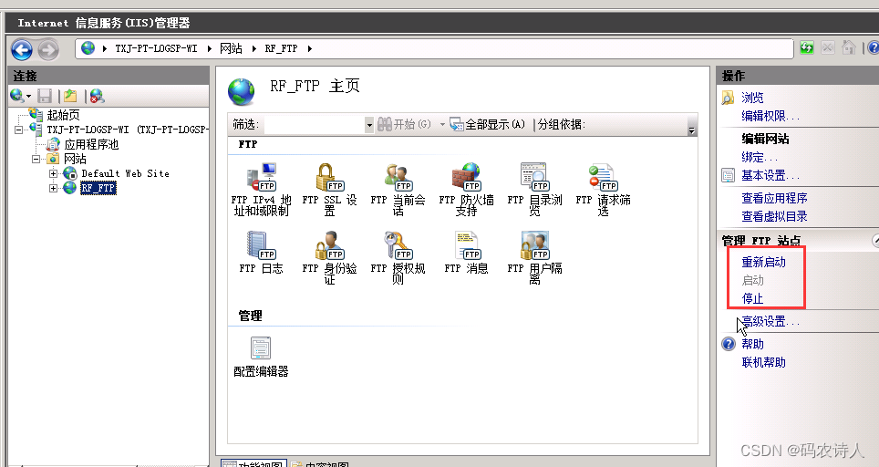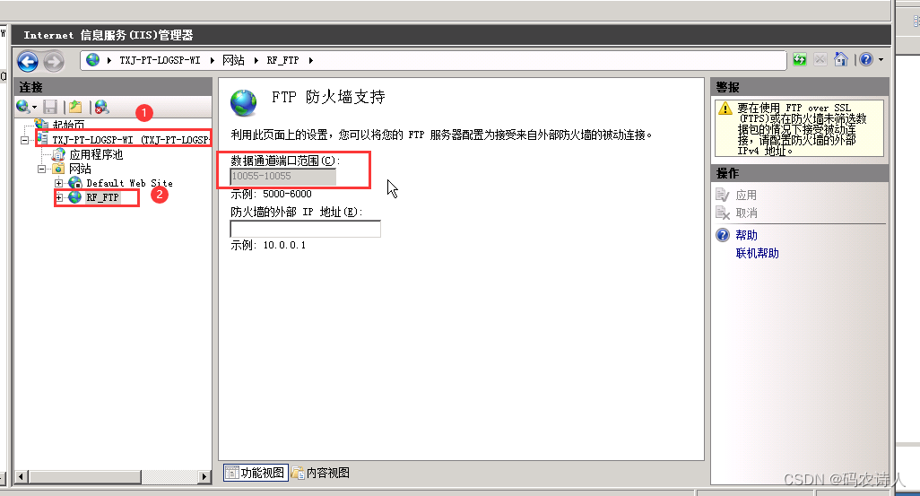 windows server 服务器搭建 ftp 服务器网上教程较多,这里就不再赘述。主要记录一下两个问题:1、设置被动模式端口;2、使其生效。