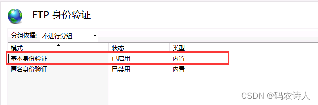 如果指定用户还是登录不上,查看“FTP身份验证”项中“基本身份验证”的状态是否已启用,如下: