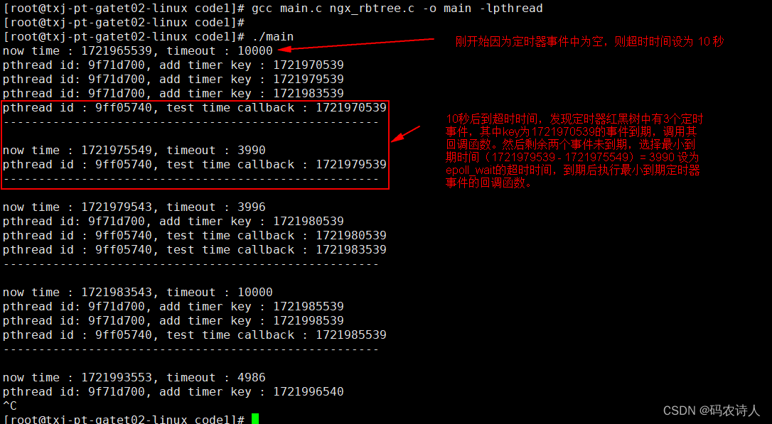 笔者之前有一篇博客大致讲解了nginx源码中红黑树实现定时器的流程:Nginx事件模块学习之定时器_码农诗人的博客-优快云博客_nginx定时器;本章先不讨论红黑树算法的具体细节,借助nginx中的红黑树源码,将其抽离出来并实现一个简单的定时器的demo。