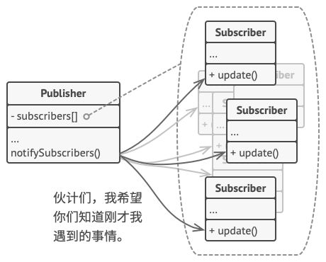 publisher.addsubscribers(subscriber1); // 订阅者登记