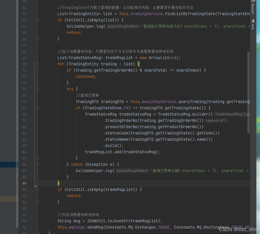 tradeMsgList.add(tradeStatusMsg); // 线程安全地添加消息