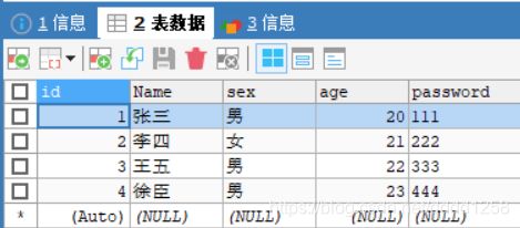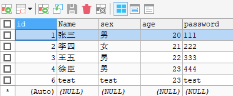 String sql = "insert into student(name,sex,age,password) values(?,?,?,?)"; //sql语言