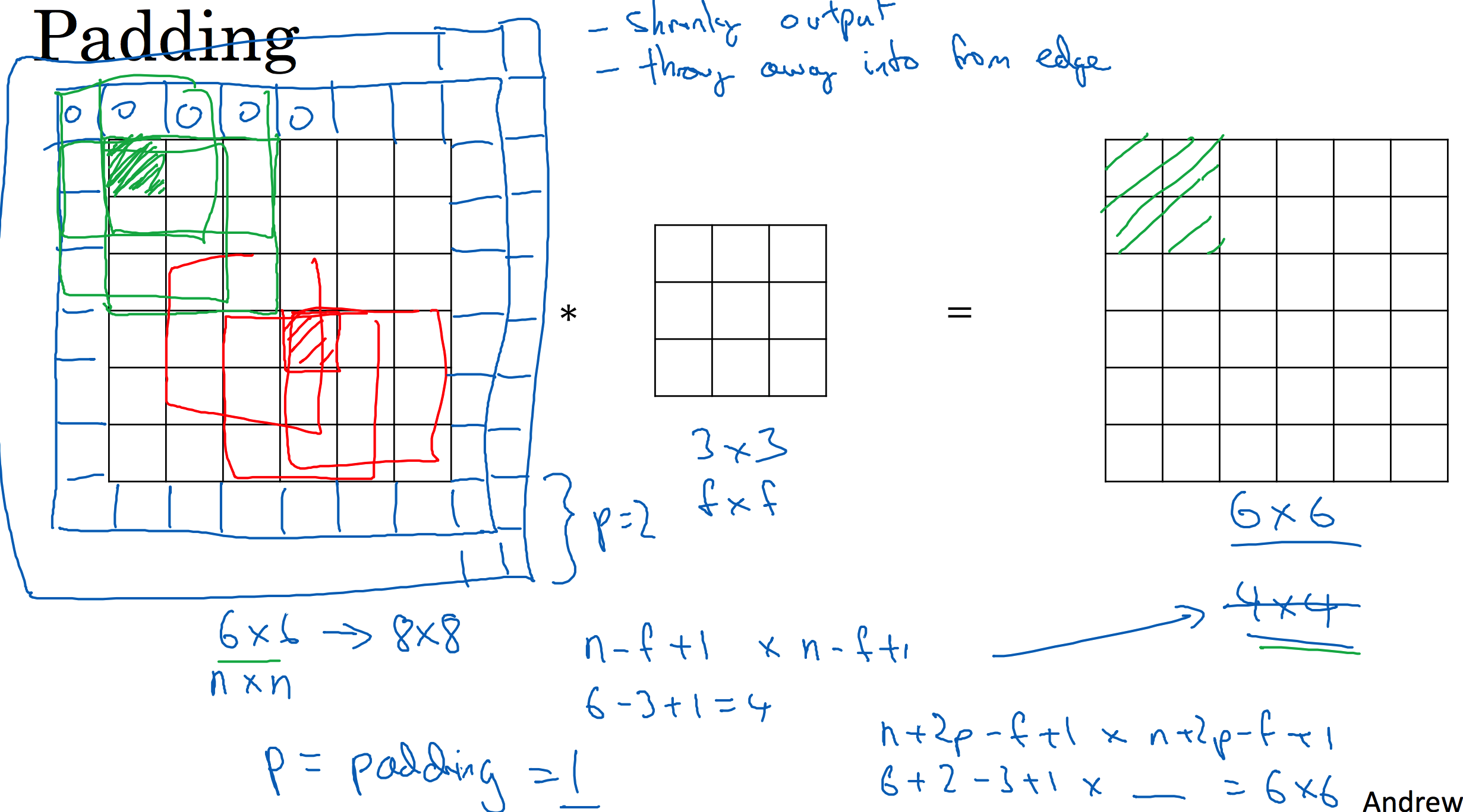 - 角落边缘的像素值,相比于影像中间区域的像素,利用率较低,卷积次数较少,存在丢失边缘信息的风险。