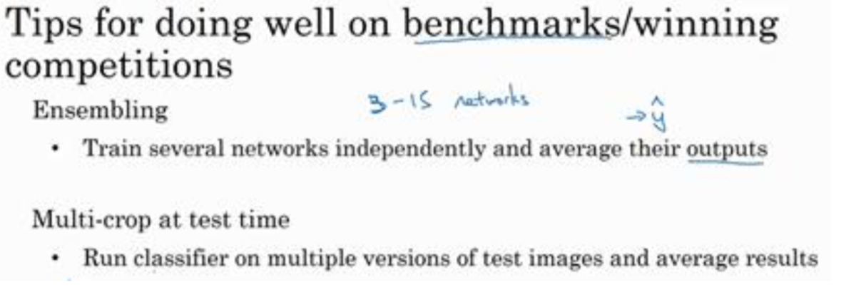 - Multi-crop at test time。将数据扩充应用到测试集上,即针对同一测试数据的不同扩充,对其测试结果取平均值。