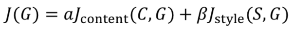 其中,Jcontent是内容代价,用来度量内容图像C与生成图像G的内容有多相似。Jstyle是风格代价,用来衡量风格图像S与生成图像G风格的相似度。两种之间的权重由超参α合β来描述。