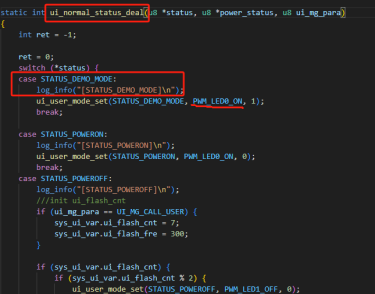 UI模式LED灯修改每个模式对应的LED灯闪烁修改在ui_normal_status_deal(u8 *status, u8 *power_status, u8 ui_mg_para)