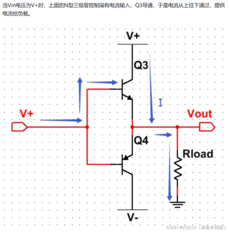 经过上面的N型三极管提供电流给负载(Rload),这就叫「推」。