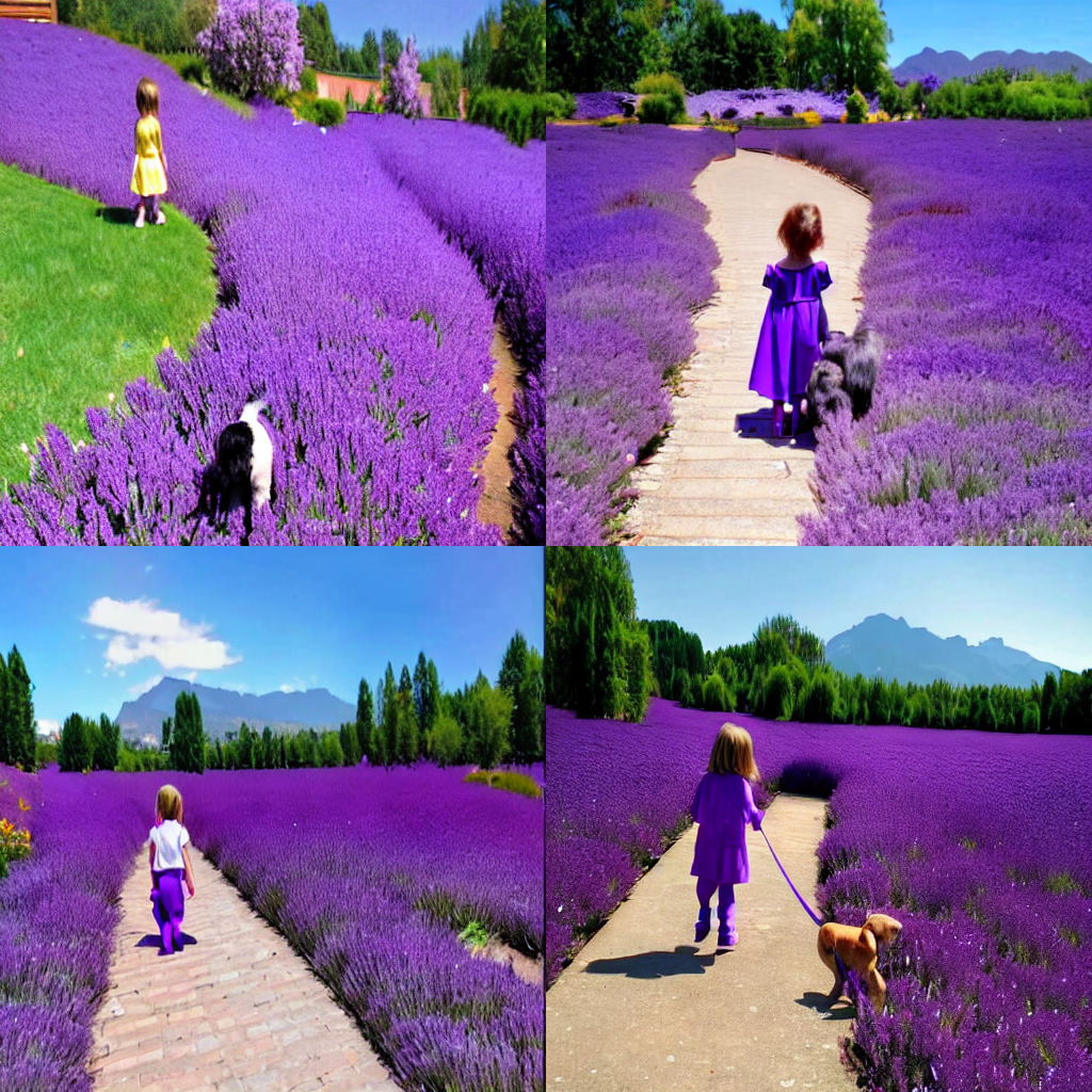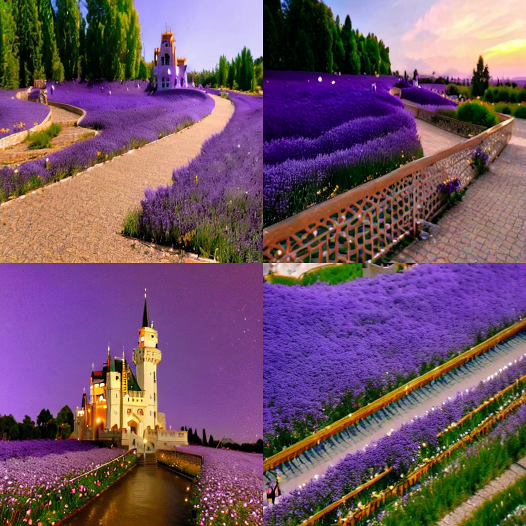 prompt = "a sea of lavender and gold flowers in the world of fairy tales is my hometown" # 搭配该权重需要使用的Prompt文本