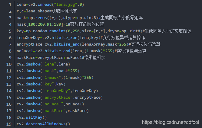 本文介绍了一个使用掩码对lena图像脸部进行打码的程序实现。通过编写特定代码,实现了对图像敏感区域的有效遮挡。