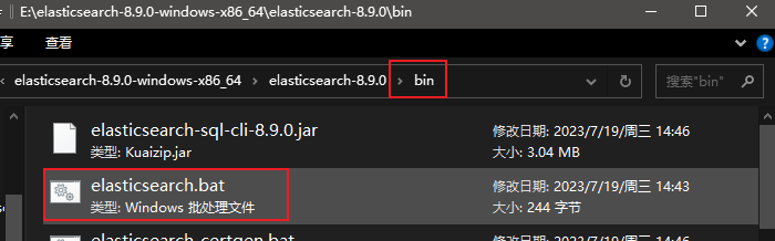解压下载es后,在目录文件找到bat文件启动